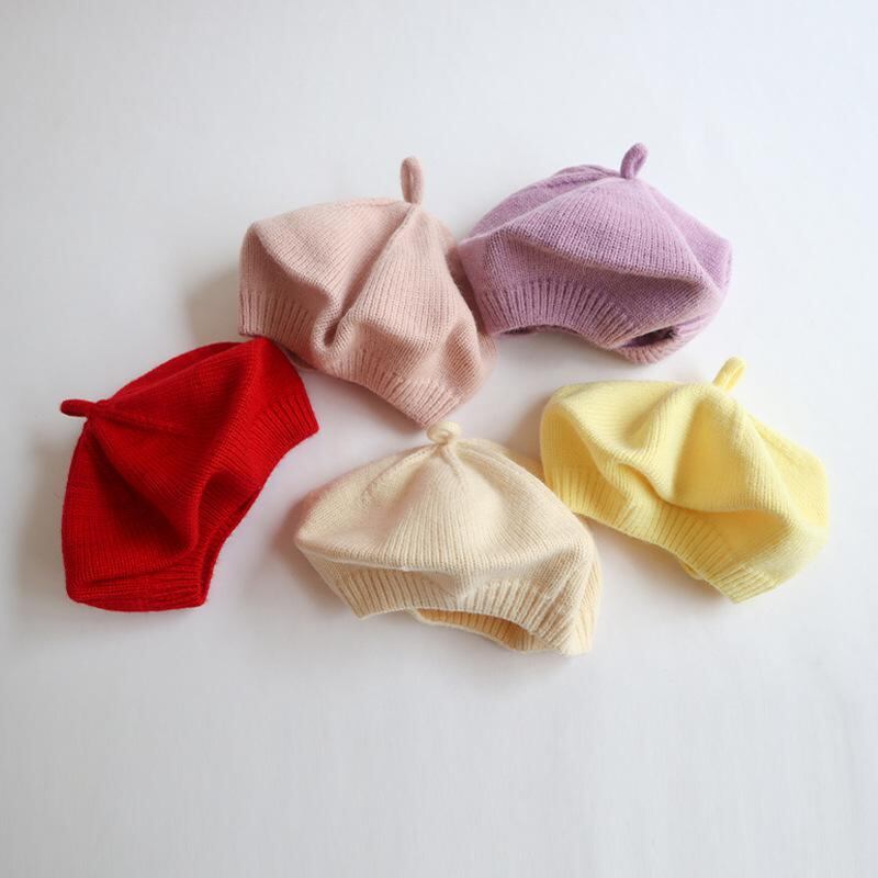 帽子 子供 女の子 ニット帽 ウール混紡 あったか 防寒 無地 レッド イエロー ベージュ ブラック ピンク系 かわいい 普段使い お出かけ