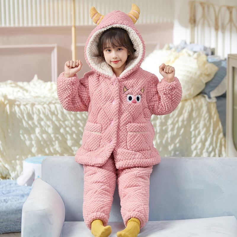 子供用パジャマ 女児 青少年 フランネル 暖かい 厚手 上下セット 寝間着 ルームウェア 秋冬 花柄 アニマル柄