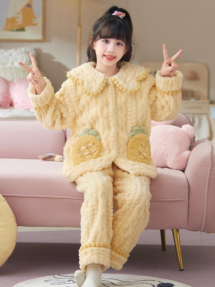 子供用パジャマ 女の子 珊瑚フリース 厚手 冬用 フランネル ガールズ キッズ ホームウェア 上下セット 暖かい かわいい 保温性