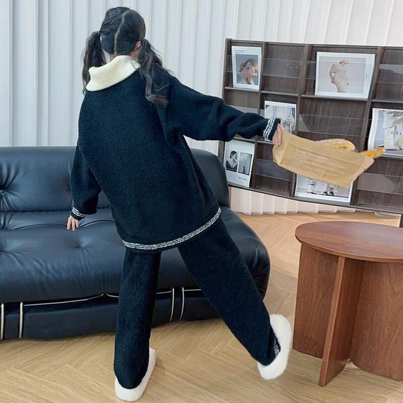 子供用パジャマ 秋冬 女の子 ルームウェア 厚手 フランネル 上下セット 暖かい ストライプ 120cm 130cm 140cm 150cm 160cm 170cm 部屋着 かわいい 柔らかい 春秋 冬