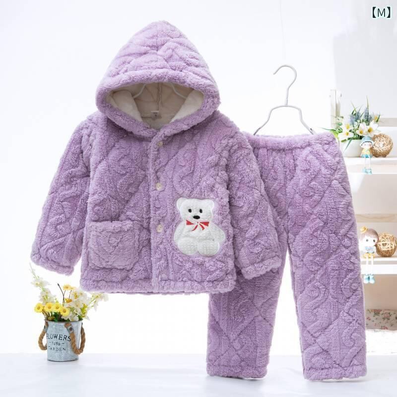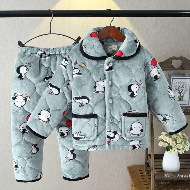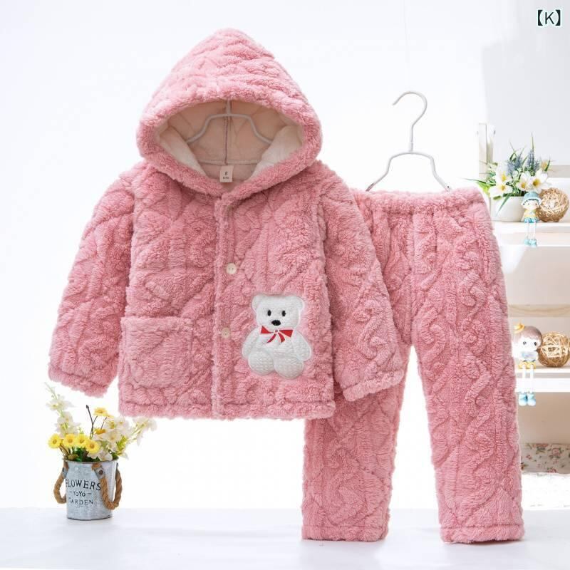 子供用パジャマ キッズ 男の子 女の子 フランネル 三層 あったか 厚手 防寒 部屋着 普段使い かわいい 牛柄 星柄 熊柄