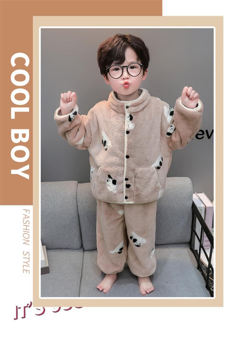 子供服 パジャマ 男の子 秋冬 コーラルフリース 2点セット 小犬柄 立ち襟 前開き 厚手 暖かい キッズ ルームウェア 寝巻き かわいい