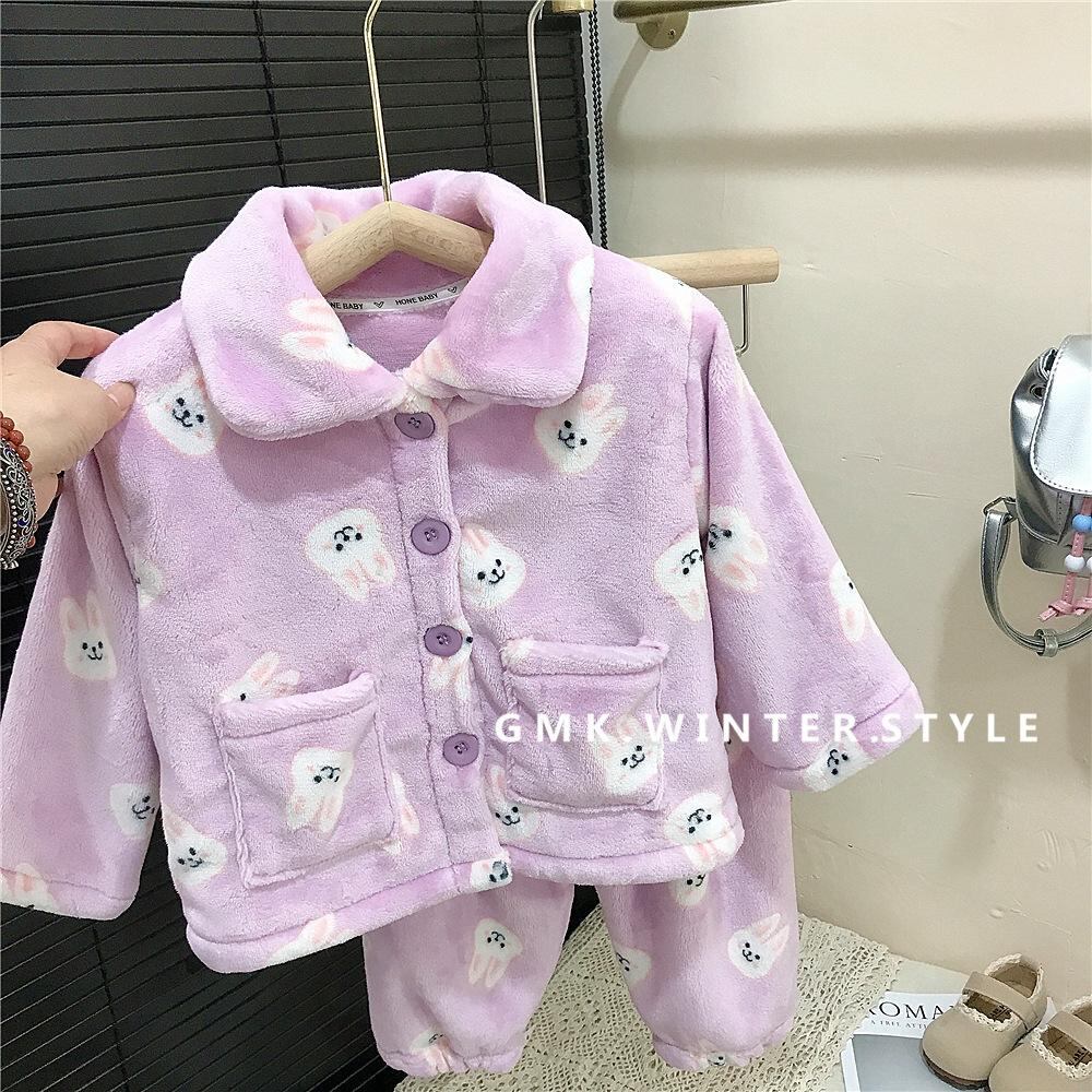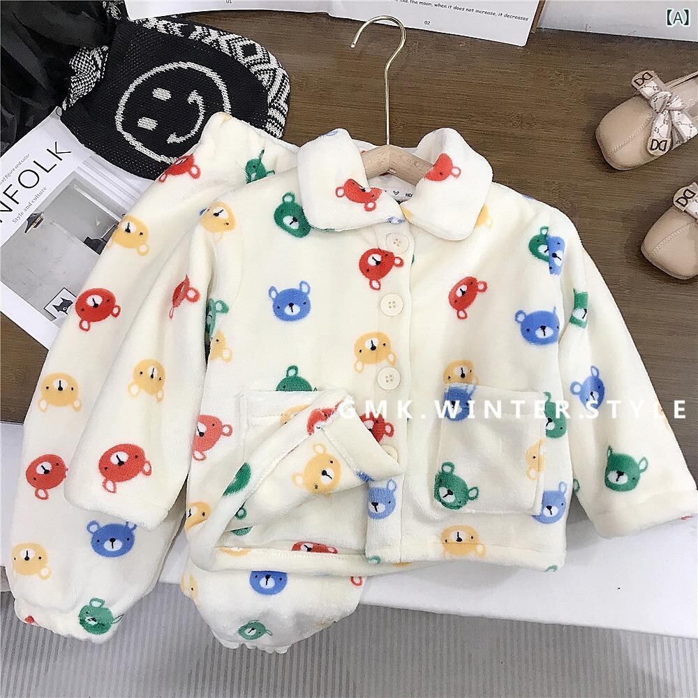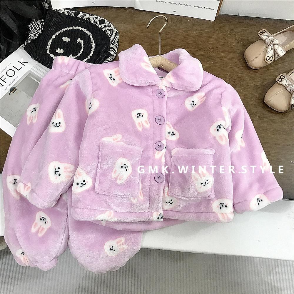 子供服 パジャマ 女の子 秋冬 厚手 フランネル あったか カーディガン ホームウェア 上下セット ベージュ パープル かわいい 普段使い 保温