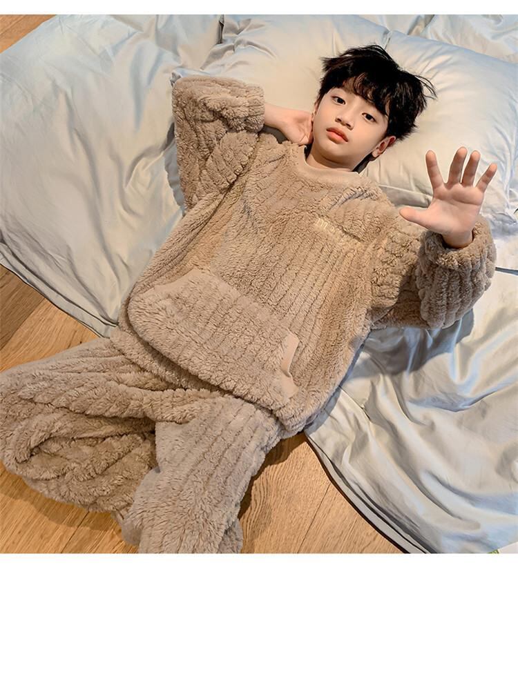 子供用パジャマ 男児 秋冬 厚手 フランネル 暖かい 長袖 ルームウェア 男の子 キッズ ジュニア 部屋着 グレー ポリエステル