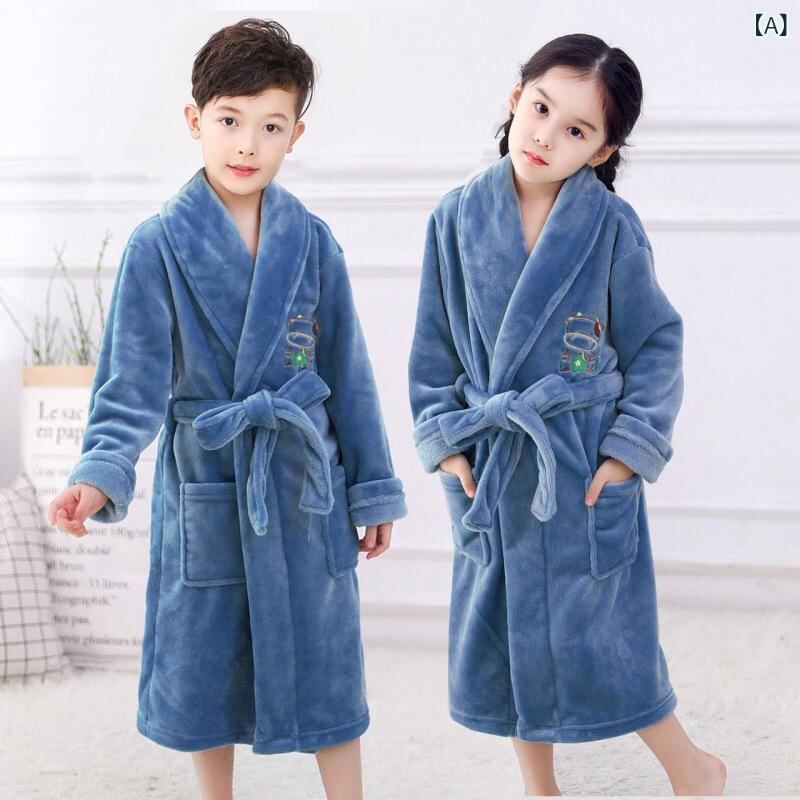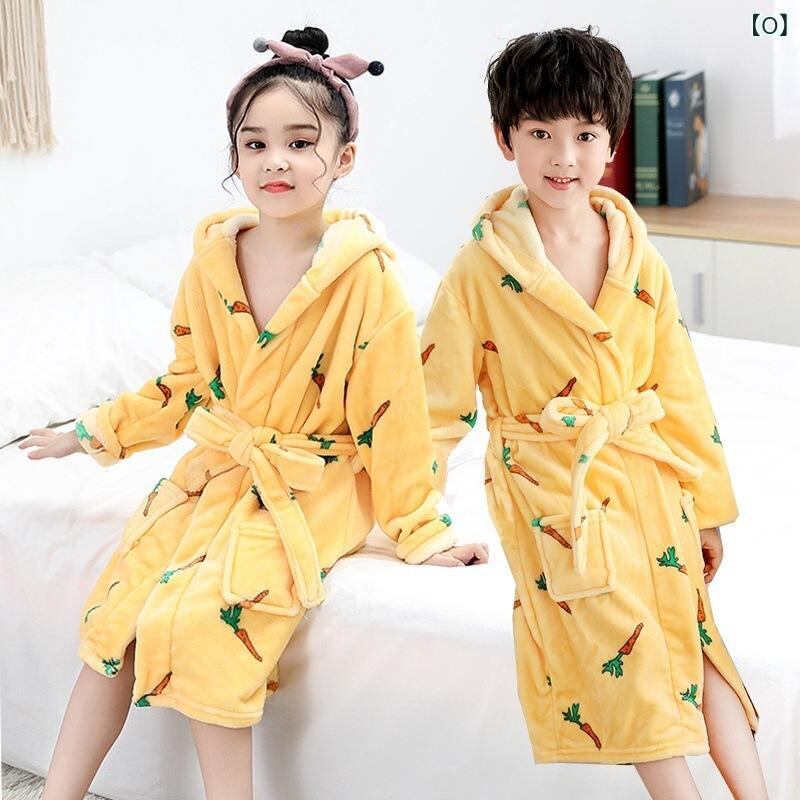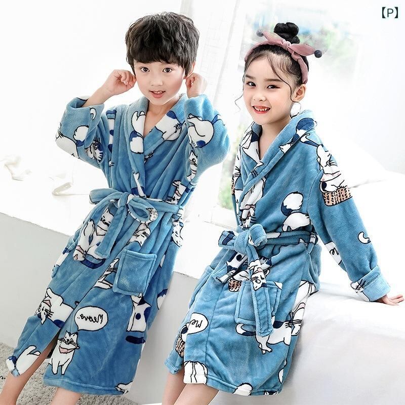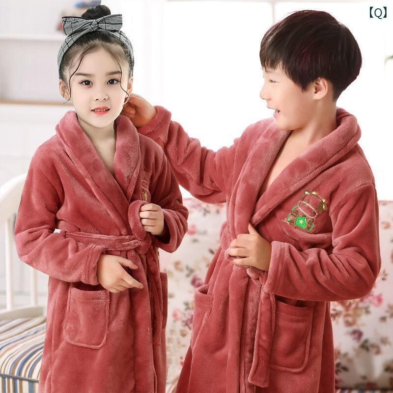 子供用バスローブ キッズパジャマ フランネル 珊瑚フリース 男の子 女の子 冬 部屋着 厚手 海老茶色 無地