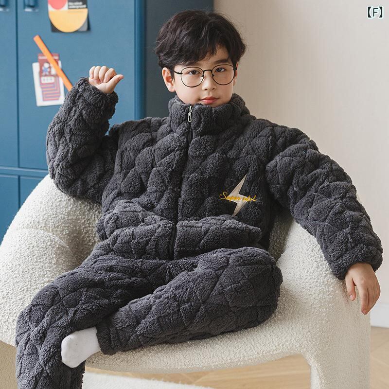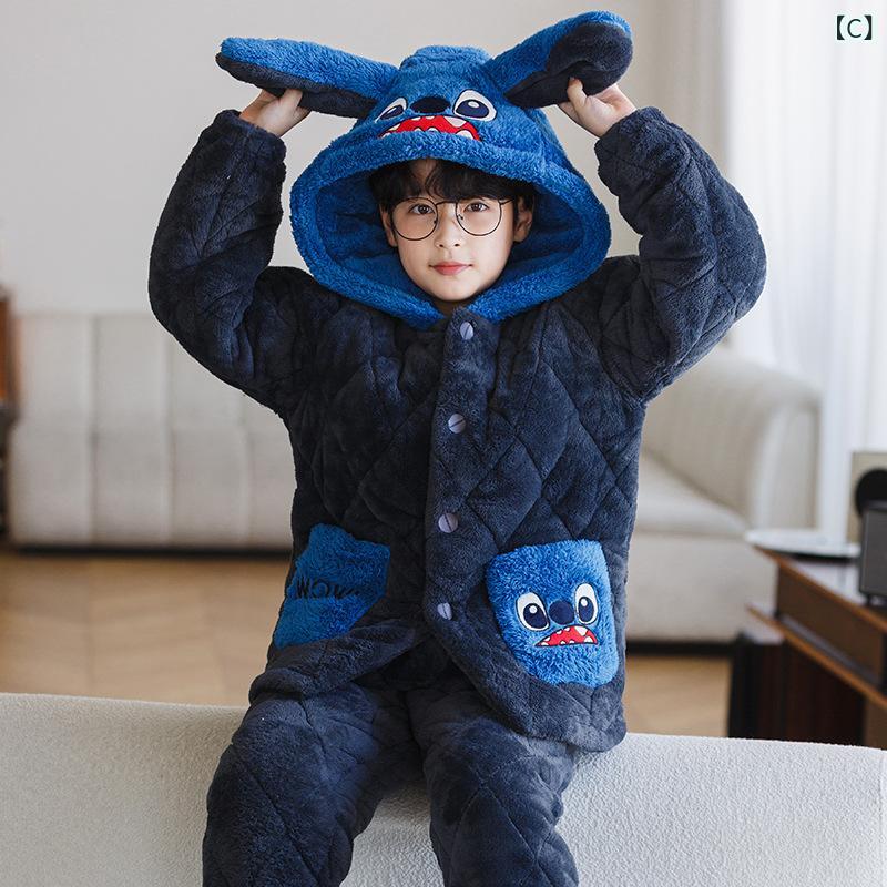 子供用パジャマ 男の子 冬用 厚手 三層 珊瑚フリース 暖かい 寝巻き 上下セット ルームウェア 部屋着 ボーイズ キッズ 幼児 無地 カートーン柄 ポリエステル | Kneebaファッションショップ