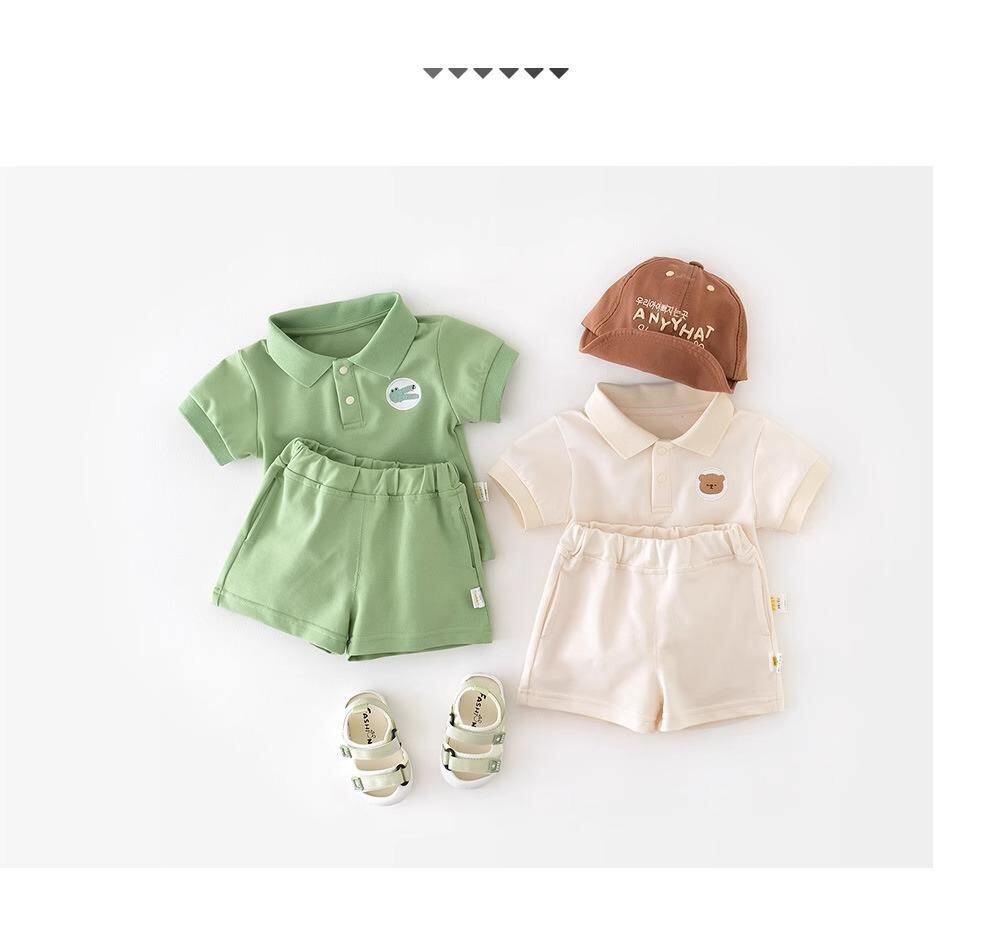キッズ ベビー服 半袖ポロシャツ & 短パン 上下セット 薄手 通気性 コットン100% 73CM 80cm 90cm 100cm