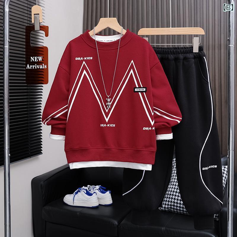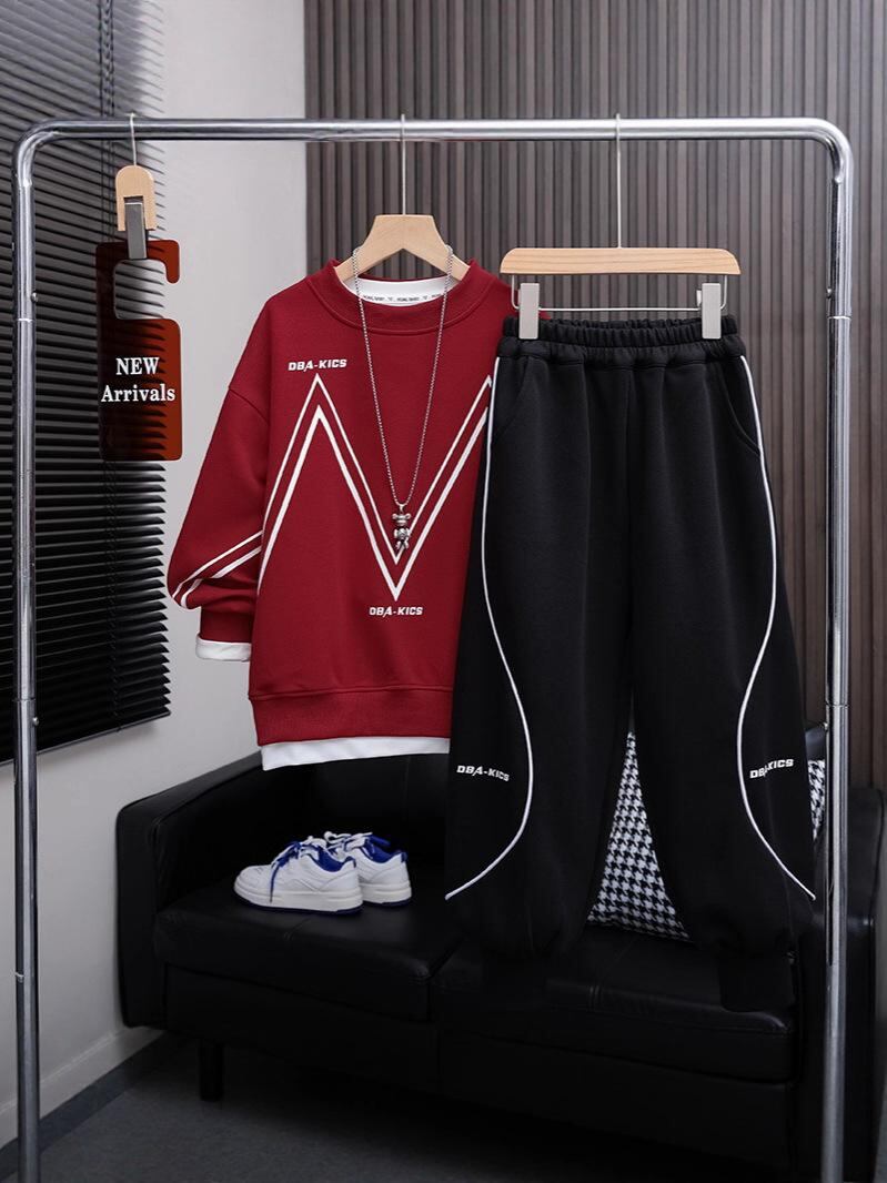 キッズ ジャージ 上下セット 男の子 春秋 スポーツウェア 子供服 スウェット 2点セット 運動着 普段着 ルームウェア ゆったり ブラック レッド 綿