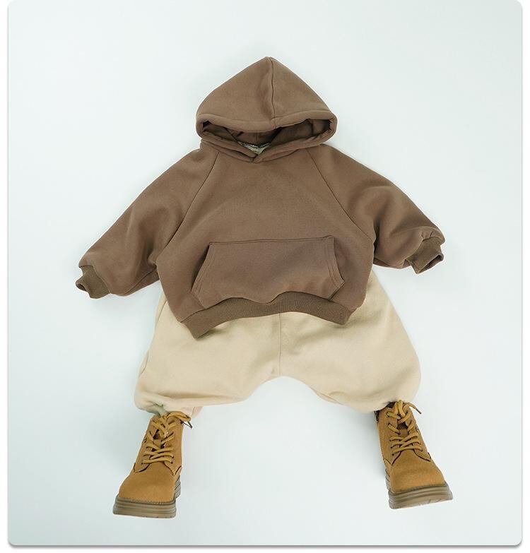 子供服 スウェット パーカー 男女兼用 裏起毛 秋冬 スポーツ 普段着 ベビー キッズ 韓国風 防寒 燕麦色 浅咖啡 ブラック