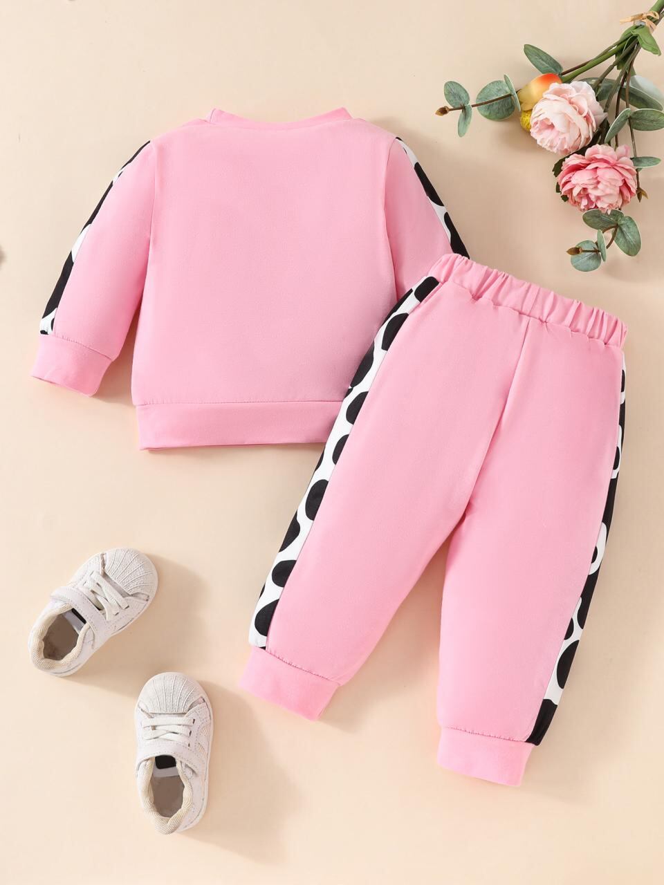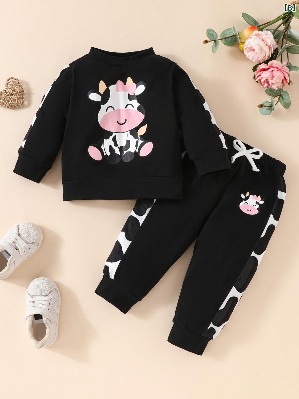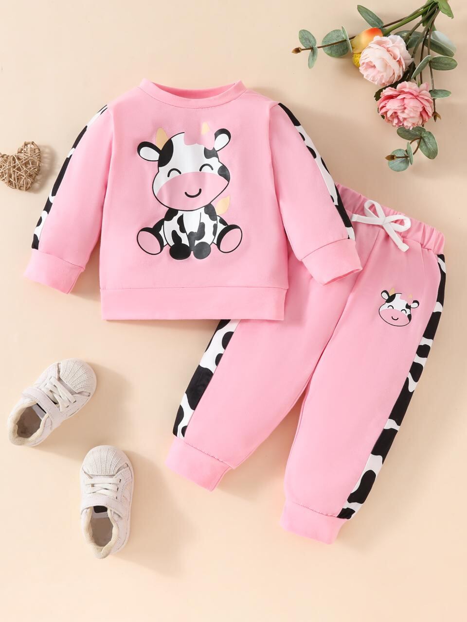 ベビー服 女の子 長袖 トップス パンツ 上下 2点 セット アニマル柄 コットン 春秋 普段着 部屋着