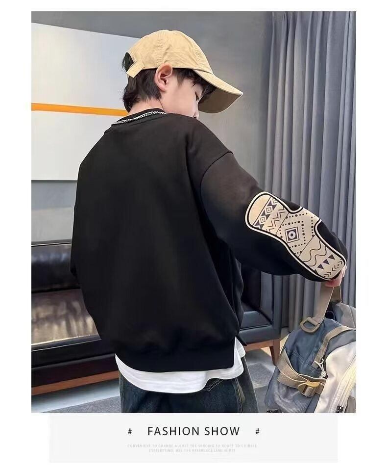 キッズ 男の子 トレーナー トップス 春秋 服 子供 カジュアル 長袖 綿100% スウェット カットソー ボーイズ ジュニア 普段着 部屋着 白 黒