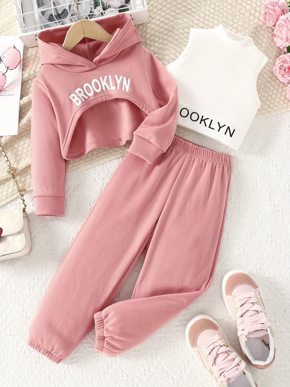 子供服 女の子 ジャージ 上下セット 3点セット 長袖パーカー 高襟ベスト インナーシャツ ロングパンツ スポーツウェア 普段着 パジャマ