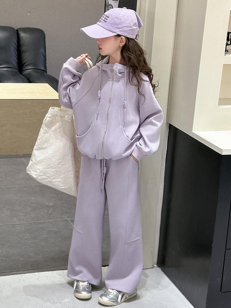 子供用ジャージ 上下セット 女の子 春秋 140 150 160 ゆったり スウェット パーカー ワイドパンツ 2点セット スポーツ 普段着 部屋着 パープル イエロー系