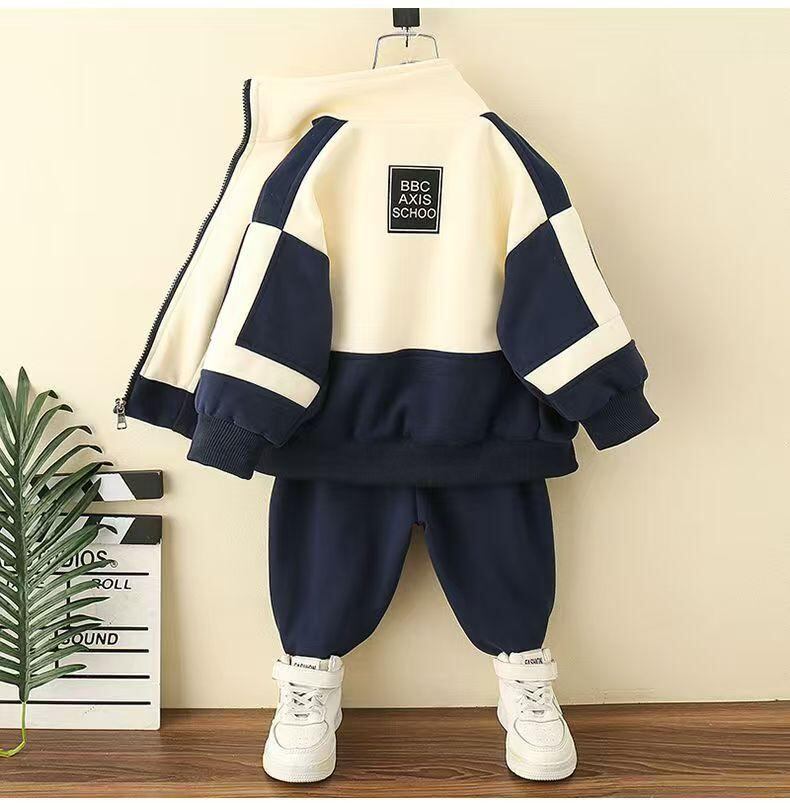 キッズ ボーイズ スウェット セットアップ 春秋 スポーツウェア 子供服 上下セット 長袖 トレーナー ロングパンツ 2点セット カジュアル 普段着 部屋着 深藍色 乳白色 90cm 100cm 110cm 120cm 130cm 140cm