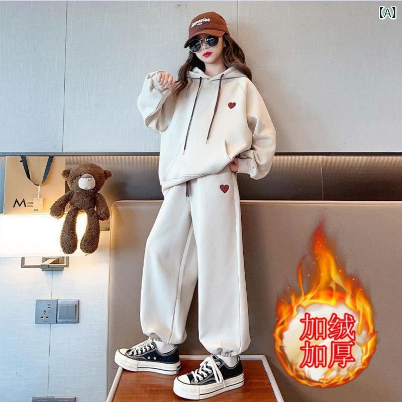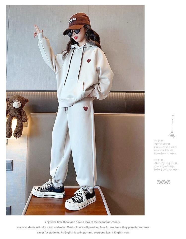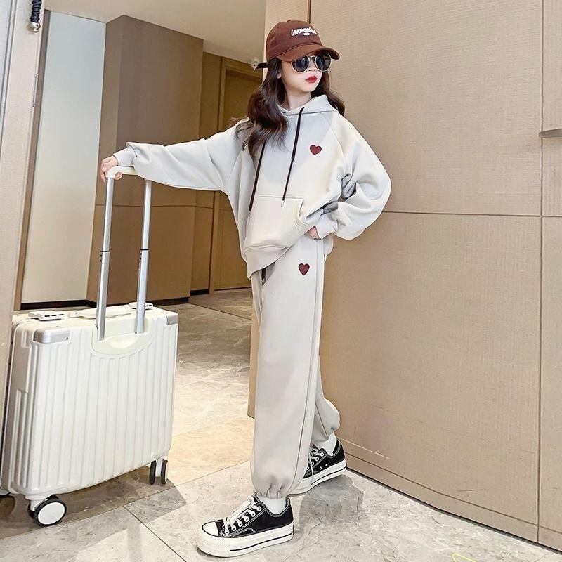 キッズ スウェット セットアップ 秋冬 裏起毛 ハート 刺繍 パーカー パンツ 上下セット 部屋着 普段使い