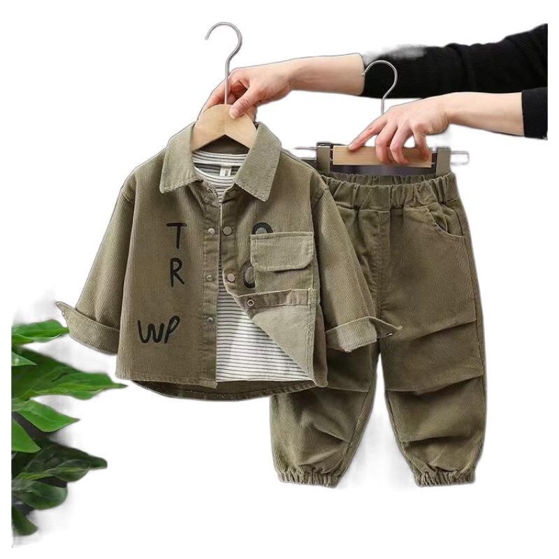 キッズ ボーイズ 男の子 フォーマル スーツ 上下セット ジャケット パンツ 長袖 長ズボン カジュアル 普段着 部屋着 アウトドア 再生繊維 軍緑色 カーキ色