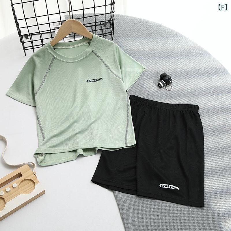 子供用スポーツウェア 上下セット 薄手 半袖短パン 男の子 接触冷感 吸湿速乾 ポリエステル
