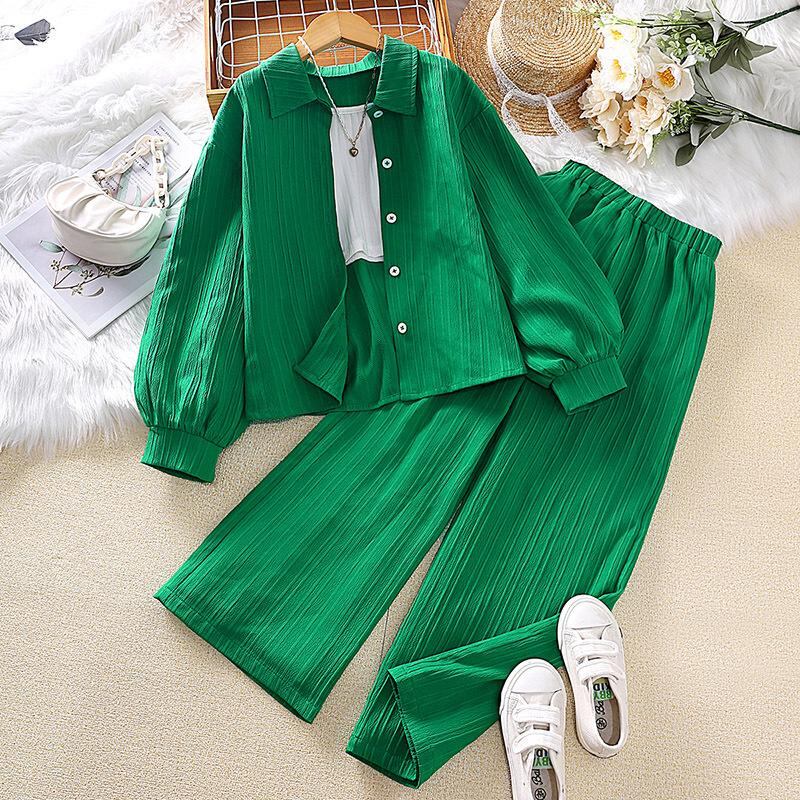 キッズ 服 & ファッション 子供用 長袖シャツ & パンツ セット 春秋 2点セット 男の子 女の子 無地 普段着 130 140 150 160 グレー 紺色