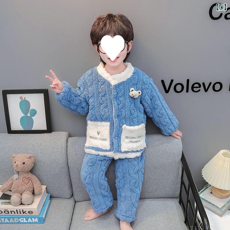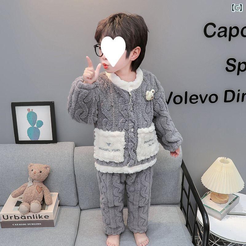 子供用パジャマ 秋冬 厚手 コーラル ベルベット 男の子 ベビー ホームウェア 部屋着 ブルー グレー 小熊柄