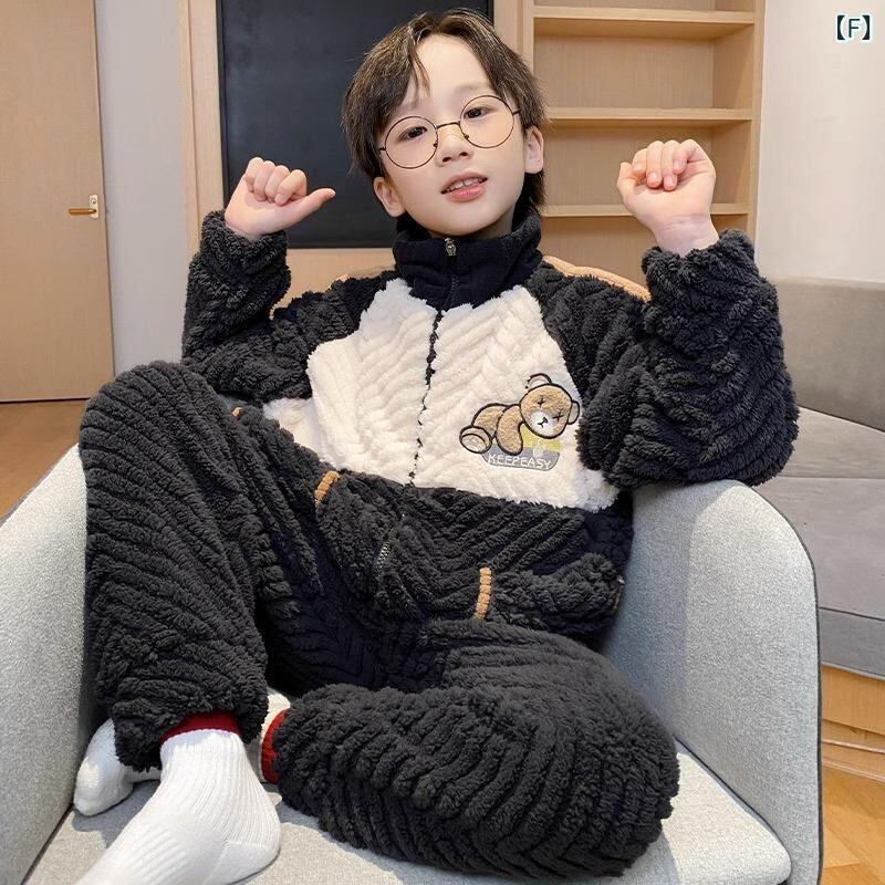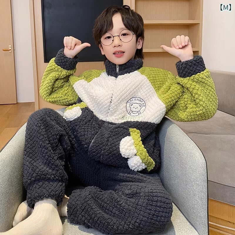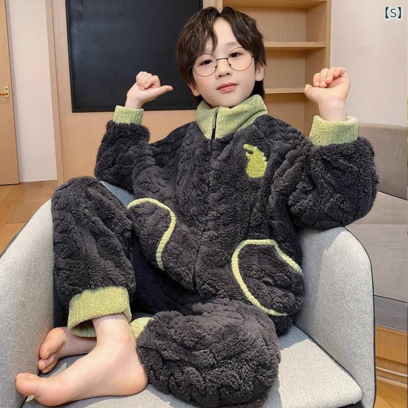 子供用パジャマ 男の子 秋冬 珊瑚マイヤーフラノ 厚手 冬用 大童 ホームウェア ボーイズ 寝巻き 部屋着