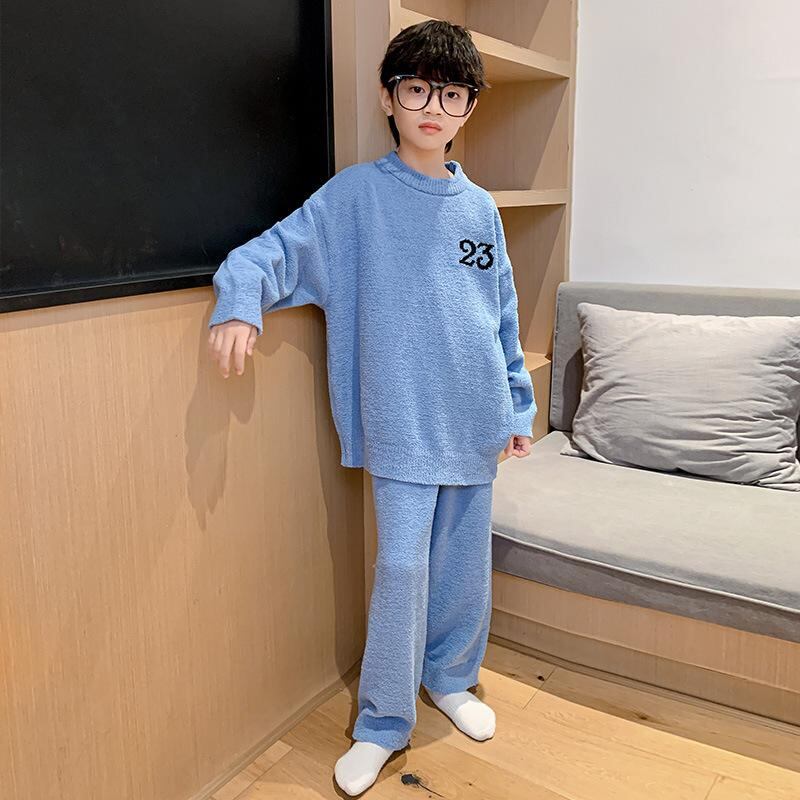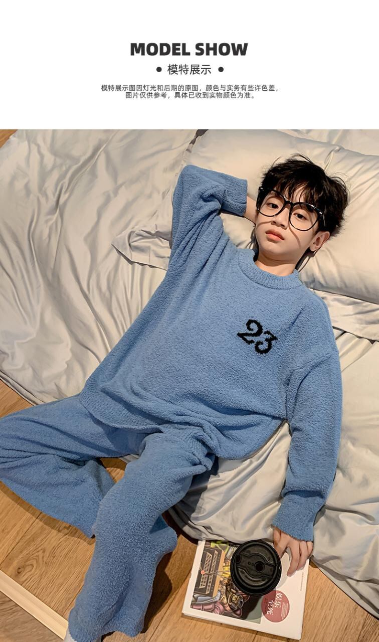 子供用パジャマ 秋冬 男の子 フランネル 厚手 暖かい 上下セット ルームウェア ボーイズ 120cm 130cm 140cm 150cm 160cm 170cm ストライプ カートーン柄 ブルー ブラック 部屋着