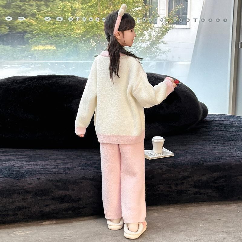 子供用パジャマ 女の子 フランネル 厚手 キッズ ルームウェア 上下セット 綿100 秋冬 120cm 130cm 140cm 150cm 160cm 170cm ピンク