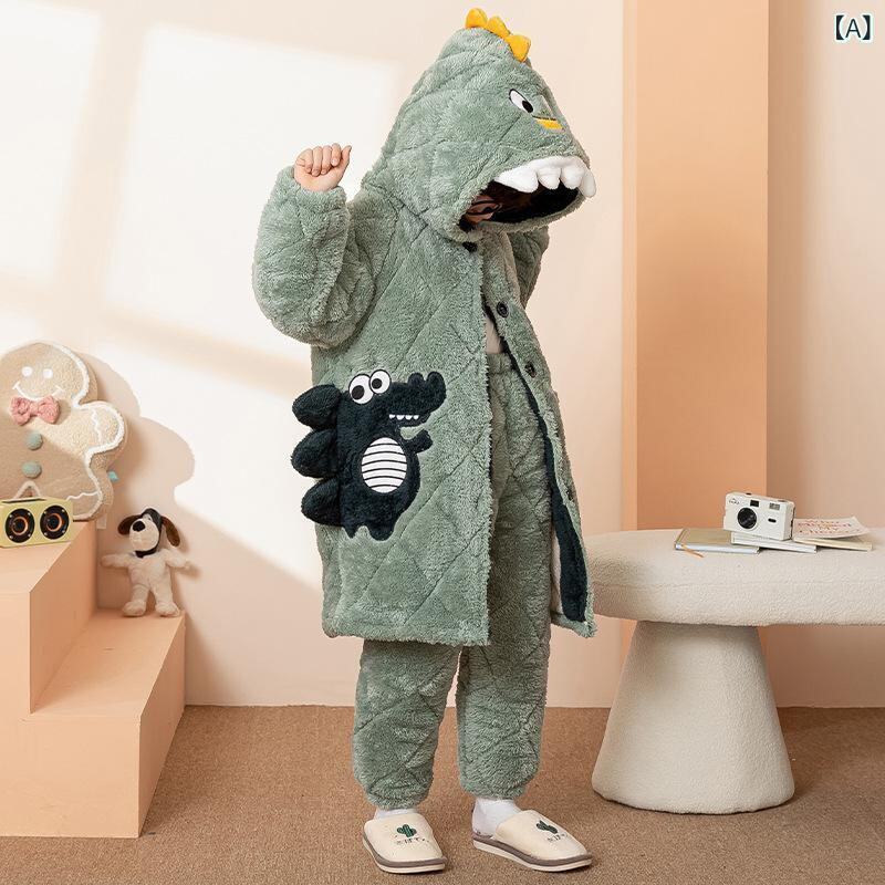 子供用パジャマ 男の子 女の子 冬用 厚手 三層 珊瑚フリース フランネル 部屋着 上下セット あったか ゆったり かわいい 140cm以上