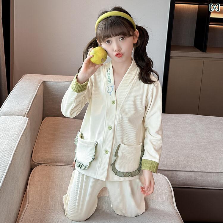 子供用パジャマ 秋冬 厚手 アイランドフリース 女の子 中 大 キッズ ホームウェア 上下セット プリンセス フランネル 部屋着 寝巻き 杏色 ポリエステル 伸縮性 吸湿性 あったか
