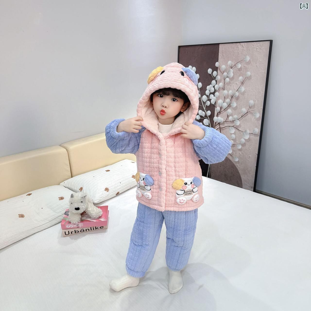 子供用パジャマ 女の子 冬 上下セット フランネル 厚手 かわいい 犬柄 部屋着 ルームウェア 80 90 100 110