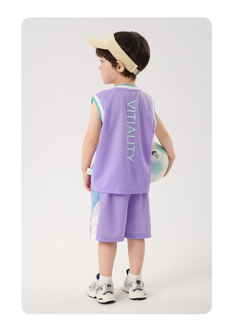 キッズ 男の子用 スポーツウェア 上下セット 速乾性 ノースリーブTシャツ ハーフパンツ セットアップ 普段着 部屋着 アウトドア 青草緑 白 藤萝紫 ポリエステル