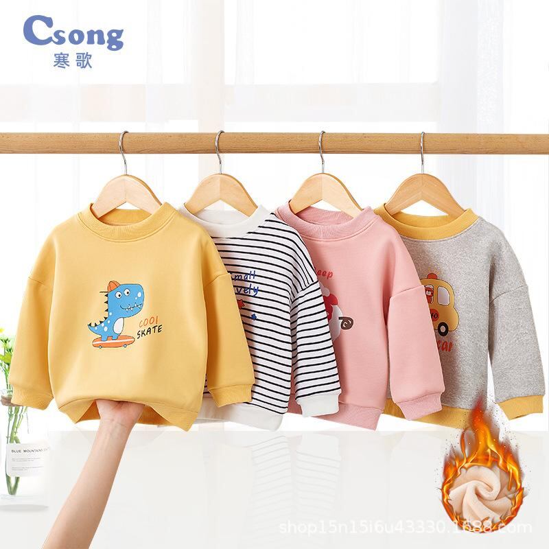 子供用 厚手 スウェットシャツ 秋冬 男女兼用 ベビー 長袖Tシャツ アウター トップス 裏起毛 幼児 小学生向け 黄色 恐竜柄 ボーダー柄 小自動車柄 ピンク 羊柄 かわいい カジュアル 普段使い(x2)