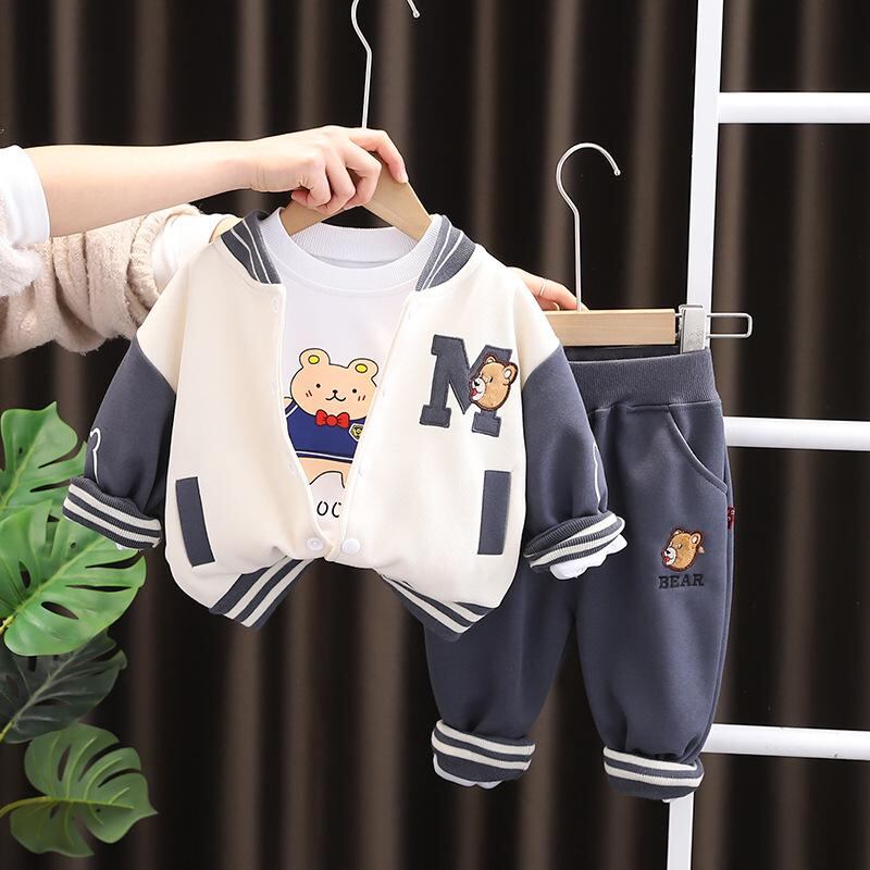 ベビー服 春秋 長袖野球 ジャケット 上下セット 3点セット 男の子 幼児 かわいい小熊 Tシャツ 長ズボン おしゃれ着 80cm 90cm 100cm 110cm 120cm