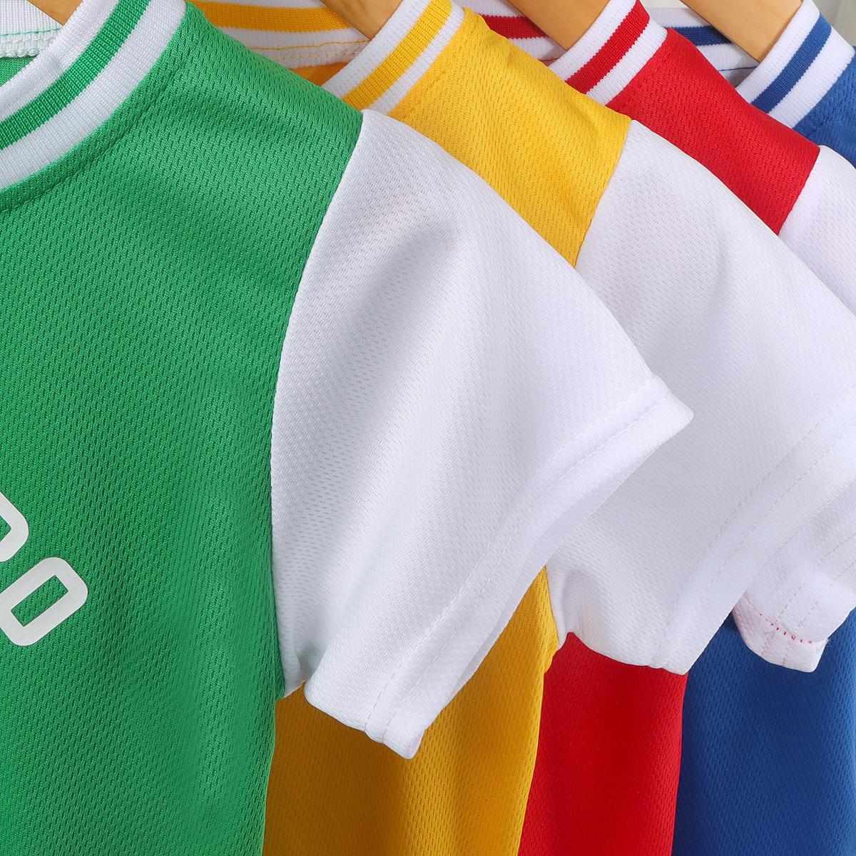 子供用スポーツウェア 上下セット 男の子用バスケットボールウェア 速乾性 半袖 短パン 薄手 夏 80 90 100 110 120 130 140 150 160 イエロー グリーン レッド ブルー ブラック グレー