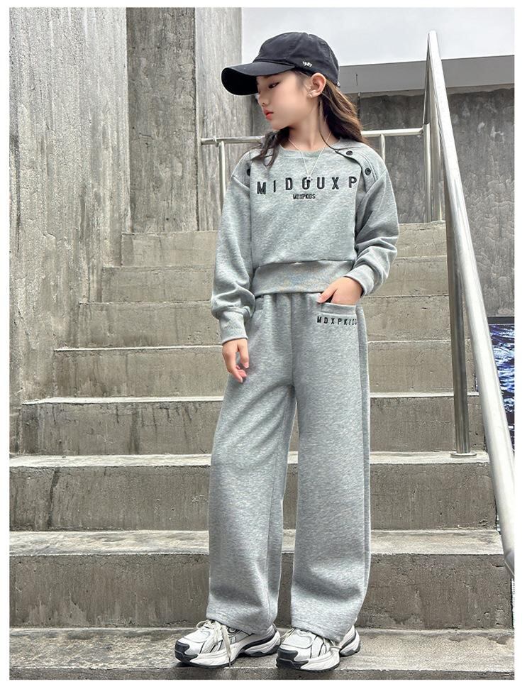 キッズ ガールズ スウェット セットアップ 長袖 トップス ロングパンツ スポーティー カジュアル 普段使い レッスン着 ポリエステル