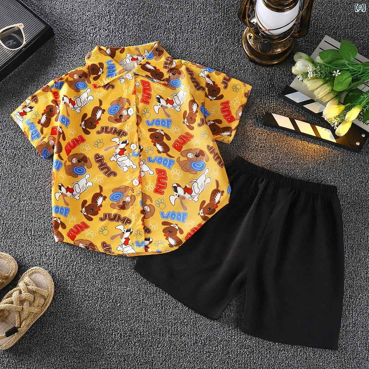 子供服 シャツ セットアップ 男の子 半袖 短パン 薄手 カジュアル 格子柄 花柄 迷彩柄 夏 中小童 2点セット 幼稚園 保育園
