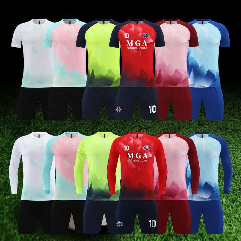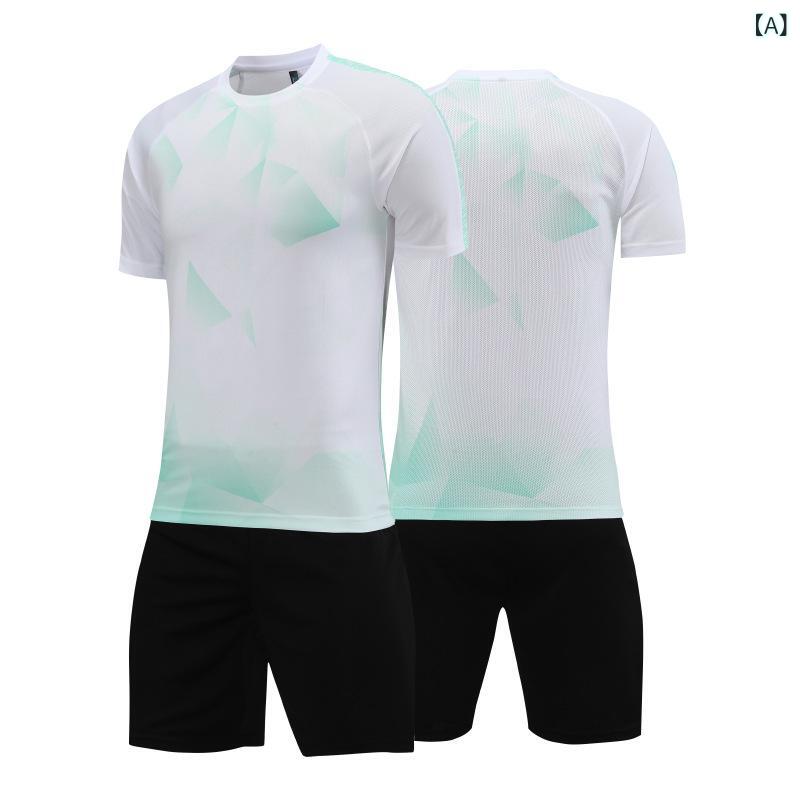 サッカーウェア セットアップ 男性用 女性用 子供用 薄手 通気性 ポリエステル 吸湿速乾 トレーニング 練習着 短袖 長袖 ホワイト ブルー レッド グリーン