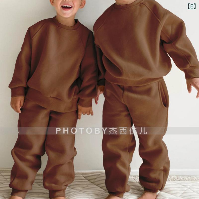 キッズ スウェット 上下セット 男の子 女の子 裏起毛 無地 トレーナー パンツ 2点セット 子供服 秋冬 80cm 90cm 100cm 110cm 120cm 130cm 140cm 杏色 カーキ ブラウン