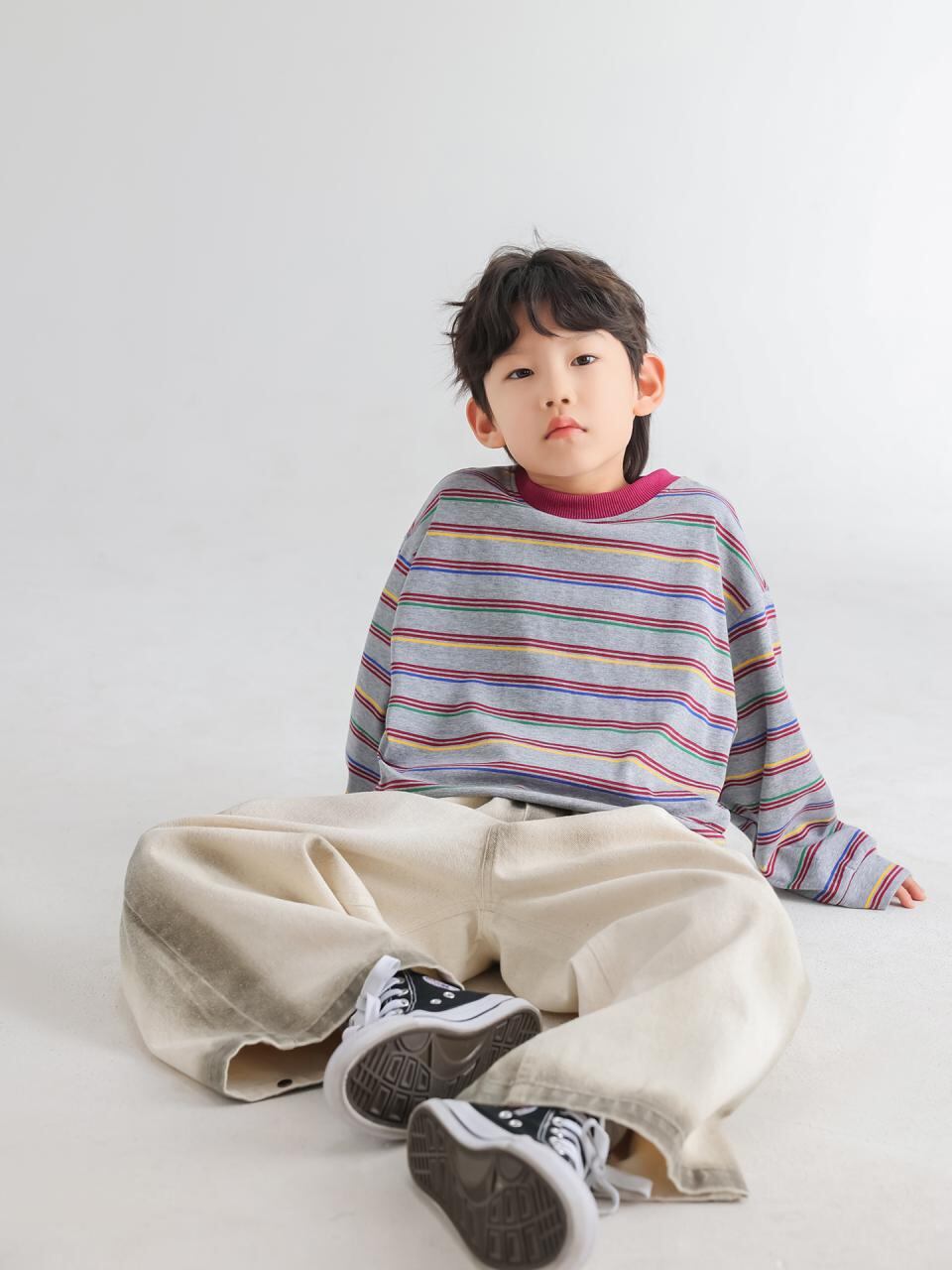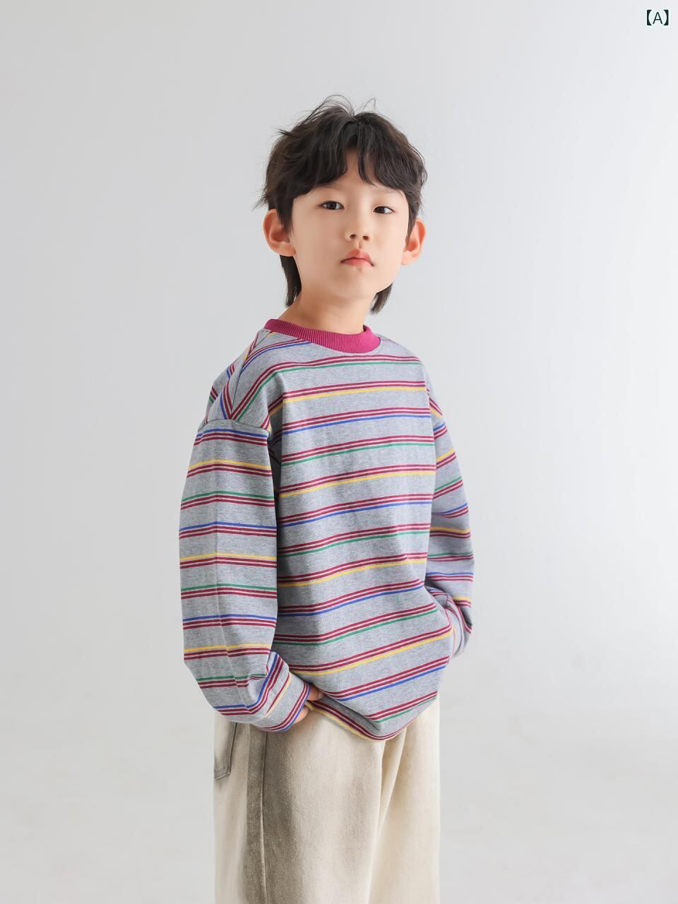 キッズ ボーイズ スウェットシャツ ストライプ柄 プルオーバー 長袖 コットン ゆったり 普段使い スポーツ 秋冬