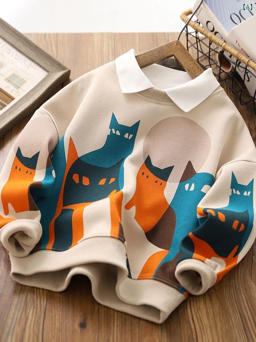 キッズ 子供用 トレーナー 長袖 カットソー プルオーバー トップス カートゥーン柄 カジュアル スポーティー ポリエステル 春秋 ベージュ系