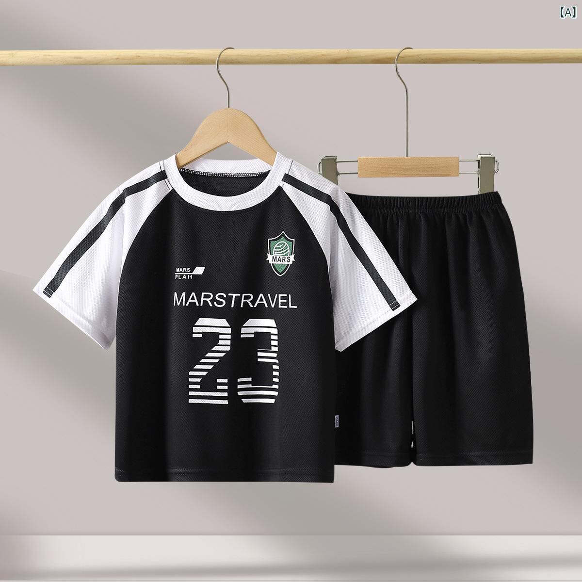 子供用スポーツウェア 上下セット 男の子用 バスケットボールウェア 半袖 短パン 速乾性 薄手 運動着 アルファベット柄