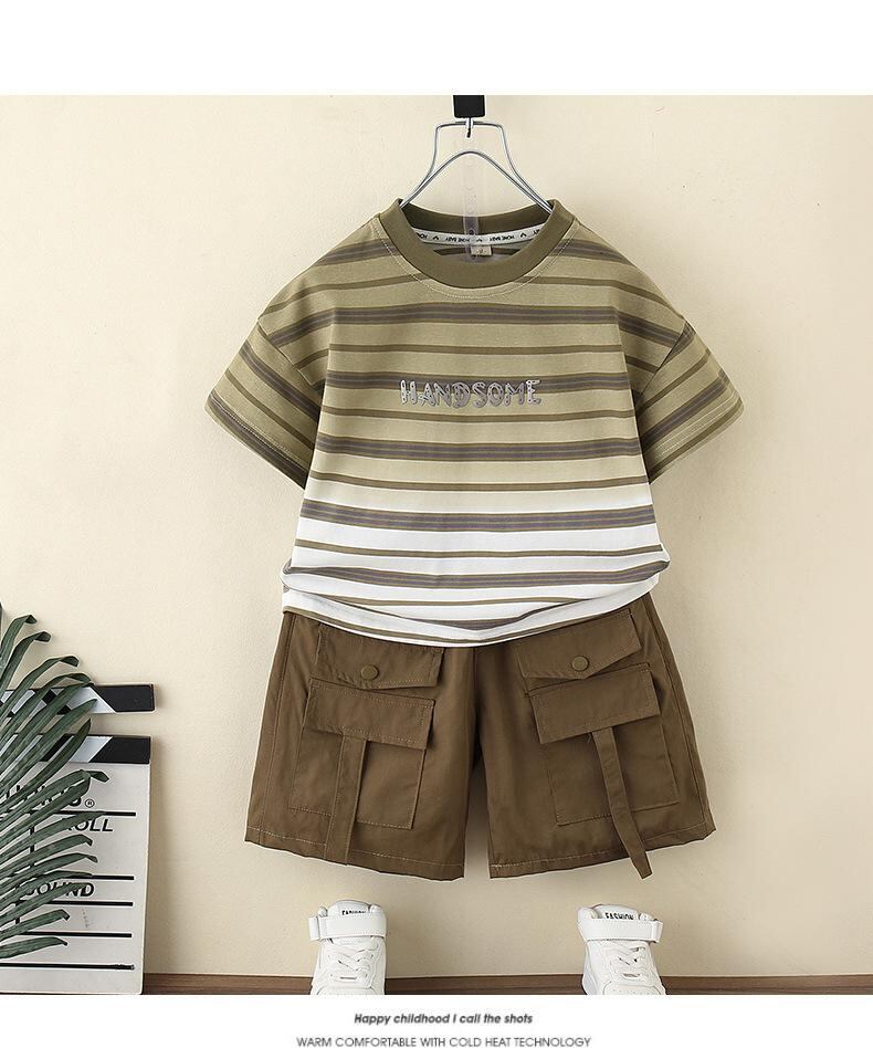 キッズ 男の子 夏服 セットアップ 半袖 短パン 薄手 ストライプ ボーイズ 2点セット 普段着 部屋着 アウトドア 綿 涼しい 緑 紫 100cm 110cm 120cm 130cm 140cm 150cm 160cm