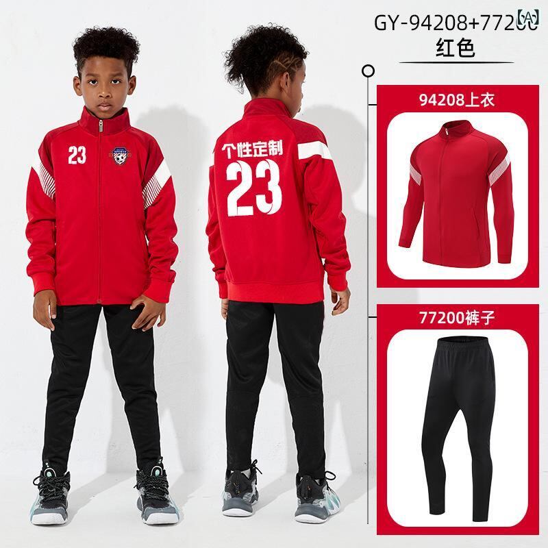 子供 サッカー トレーニングウェア 男の子 秋冬 長袖 アウター ジャージ スポーツ チーム ユニフォーム 運動着 ポリエステル 迷彩 赤 蛍光オレンジ 青 黒(x2)