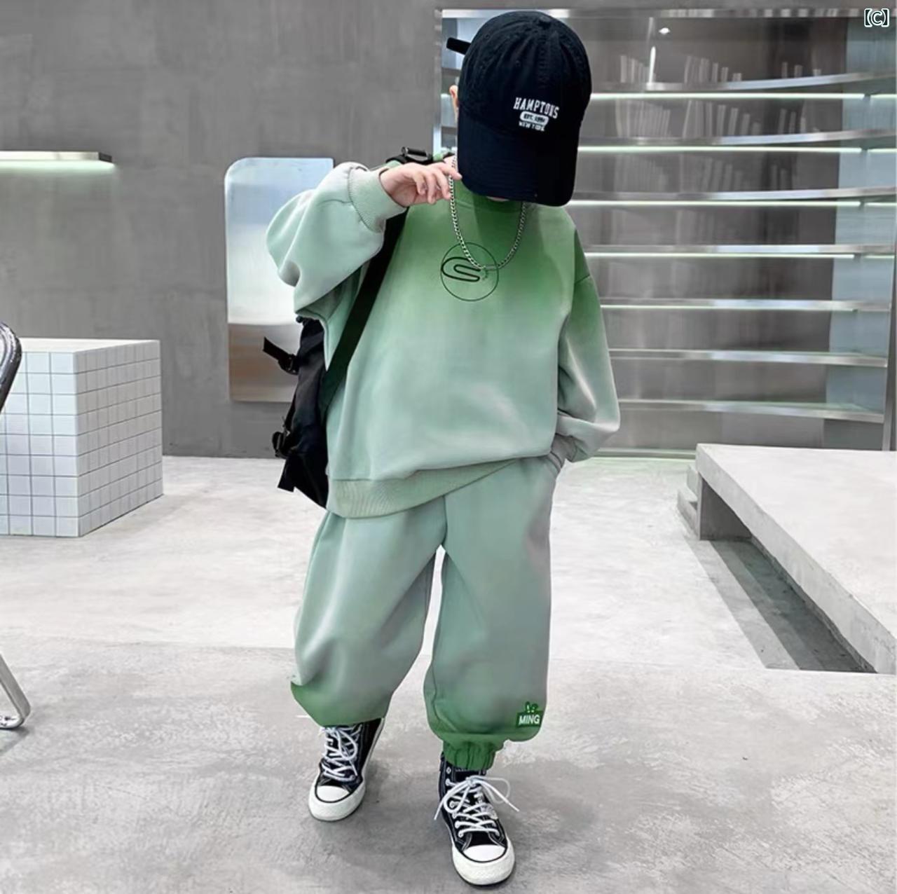 キッズ ボーイズ スウェット セットアップ 上下セット 長袖 ロングパンツ 子供服 中大童 8歳以上 スポーティー カジュアル 普段着 部屋着 秋冬 ブルー レッド グリーン