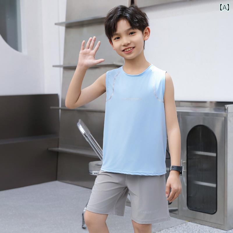 子供用タンクトップ 上下セット 薄手 男の子 接触冷感 吸湿速乾 ノースリーブ 短パン スポーツウェア 部屋着 カジュアル 普段使い 春夏