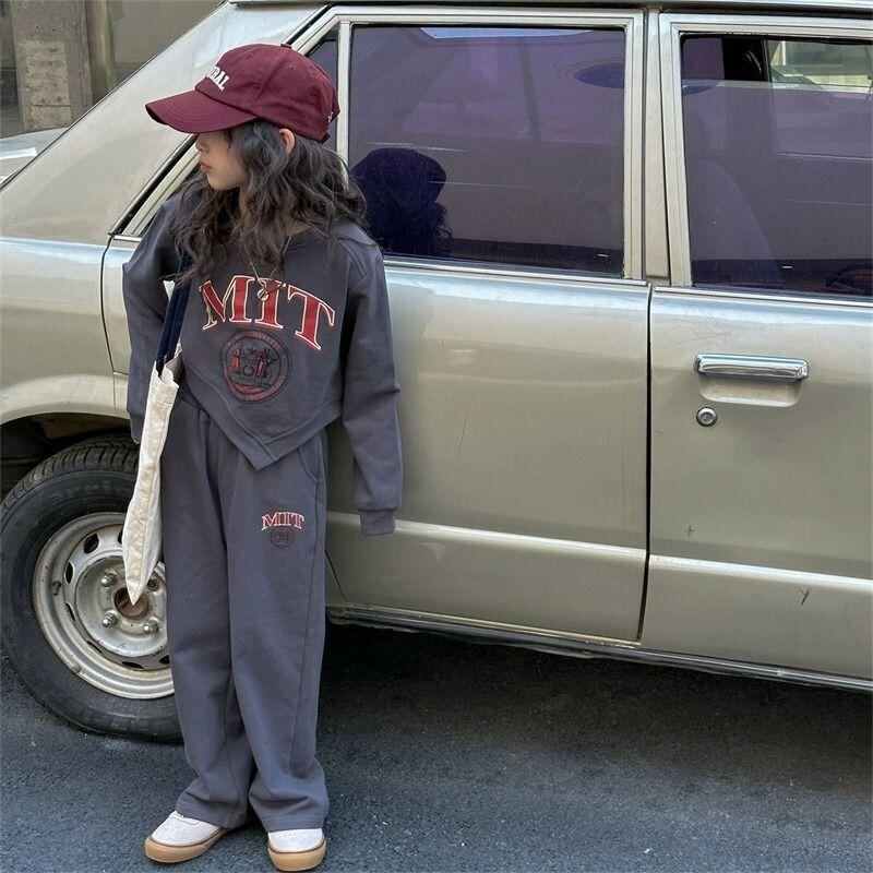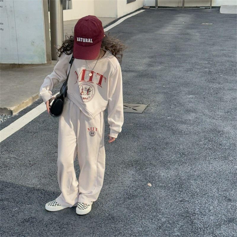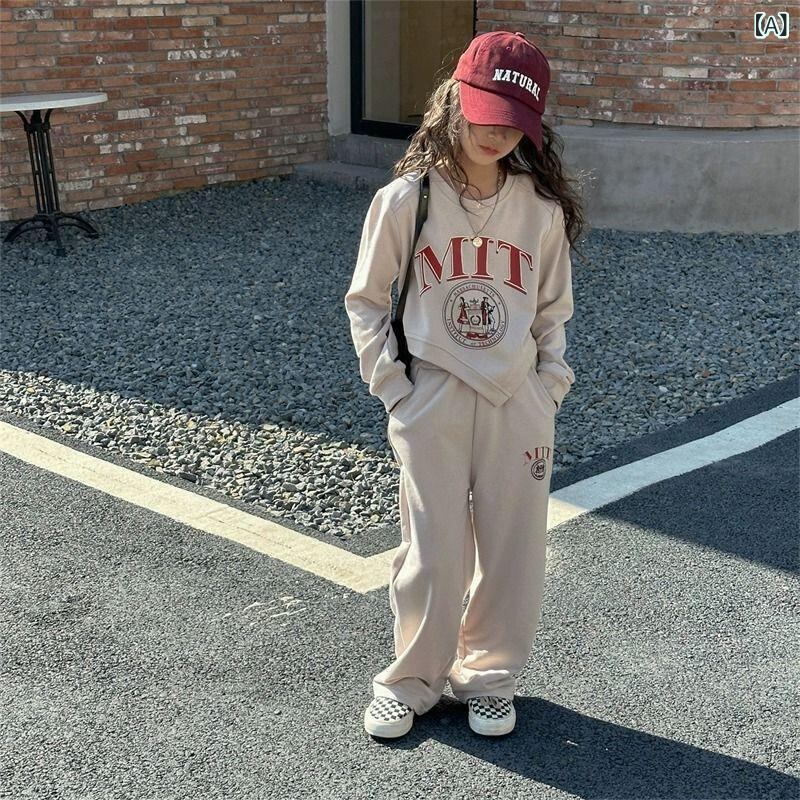 キッズ ガールズ スウェット セットアップ 上下セット 長袖 プルオーバー パンツ 2点セット 子供服 スポーツ ウェア 春秋 秋 冬 普段着 部屋着 グレー アイボリー