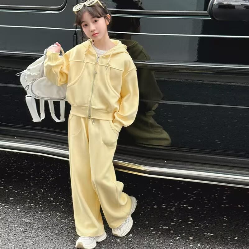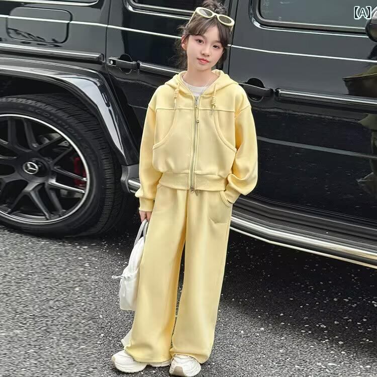 キッズ 女の子 ジャージ 上下セット 春秋 スポーツウェア 2点セット 長袖 開襟 アウター ロングパンツ 子供服 韓国風 トラックスーツ 普段着 運動着 イエロー ブルー 130cm 140cm 150cm 160cm 170cm