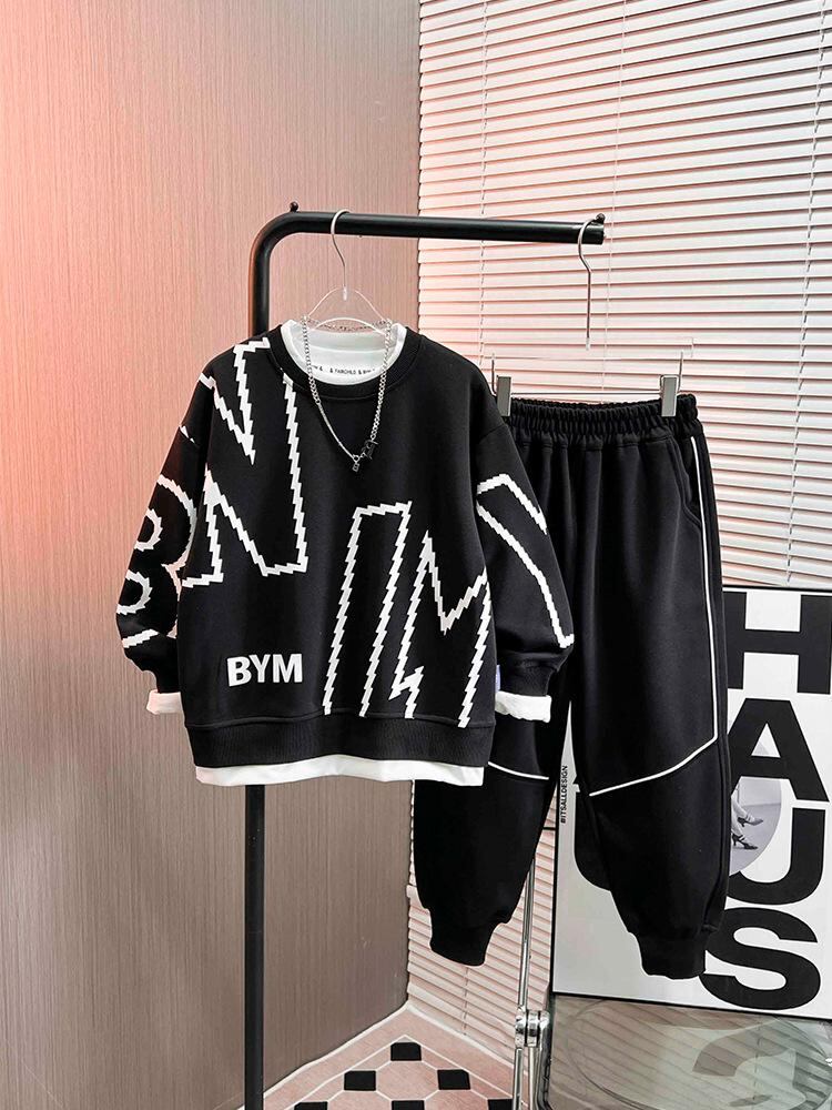 子供服 男の子 春物セットアップ 2点セット ボーイズ 8歳以上 140cm以上 春秋 スポーツウェア スウェット ブラック コットン