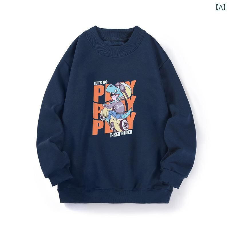 子供服 スウェット 秋冬 キッズ 男の子 裏起毛 トレーナー 長袖 プルオーバー アニマル 恐竜 プリント 高襟 トップス 普段着 遊び着 部屋着 かわいい 暖かい コットン