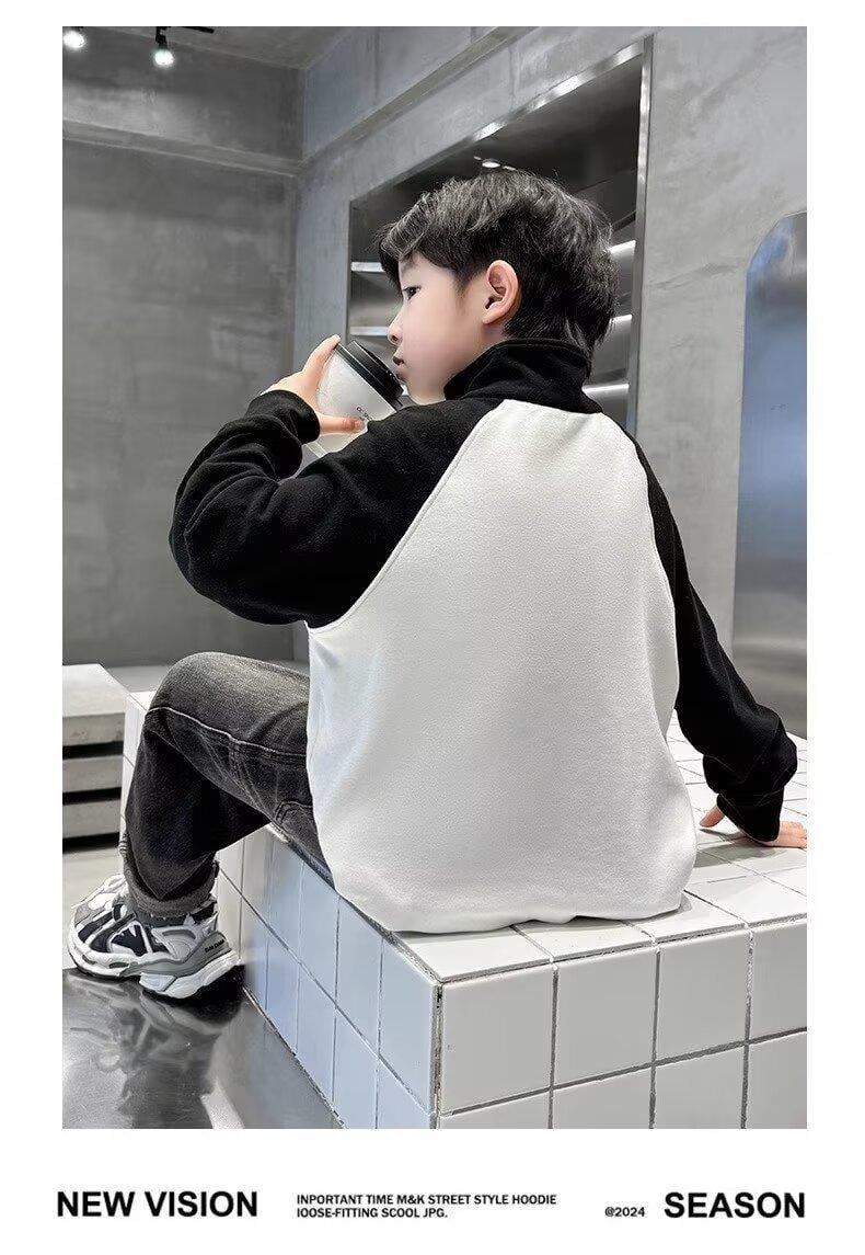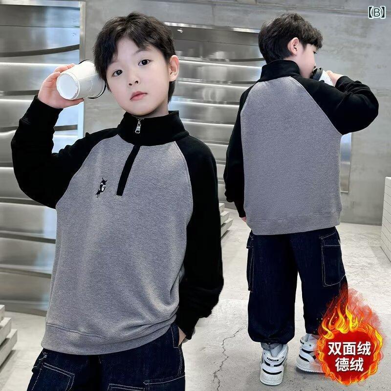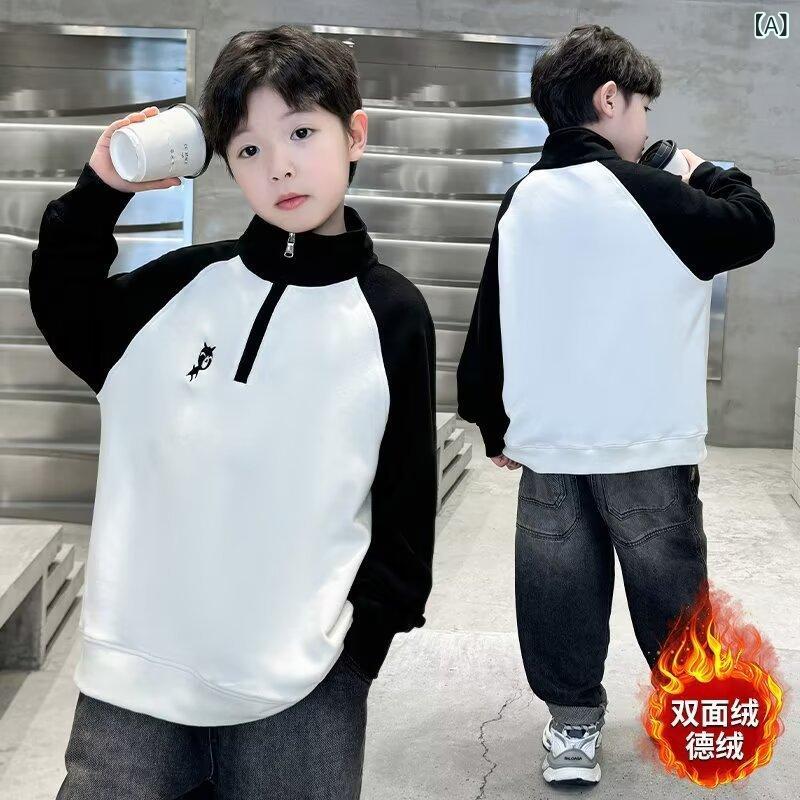子供服 カットソー 男の子 裏起毛 トップス 秋冬 中高学年 ハイネック ジップアップ 暖かい 防寒