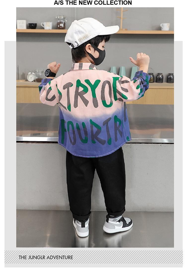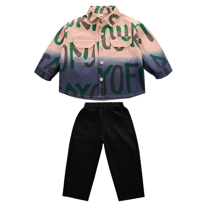 キッズ 男の子用 シャツ パンツ セットアップ 秋物 韓国風 子供服 長袖 グラデーション アルファベットプリント コットン混紡 普段着 おしゃれ着 90cm 100cm 110cm 120cm 130cm 140cm 150cm
